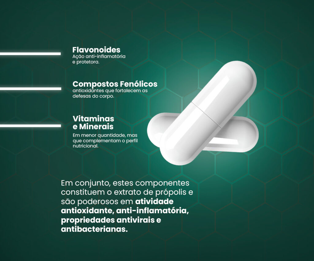 • Poder Antioxidante: Rica em flavonoides e ácidos fenólicos, a Própolis em Cápsulas combate o estresse oxidativo no corpo.